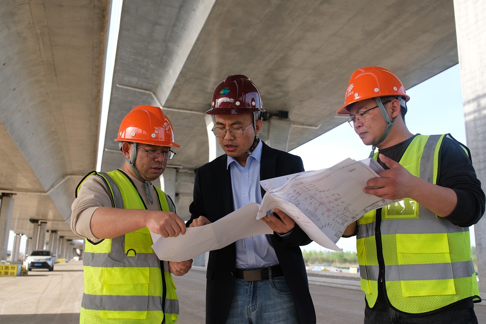 港城路上跨鐵路專(zhuān)用線橋梁工程是運(yùn)河宿遷港產(chǎn)業(yè)園骨架路網(wǎng)中的“三橫”之一,東西貫穿園區(qū),是貨物通過(guò)港區(qū)企業(yè)產(chǎn)品走向全國(guó)各地乃至全球的紐帶。司漢認(rèn)為,道路工程事關(guān)全市經(jīng)濟(jì)社會(huì)發(fā)展,早一天完工,城市發(fā)展的腳步便會(huì)快上一天,這是他們的職責(zé),即便節(jié)假日也不例外。
